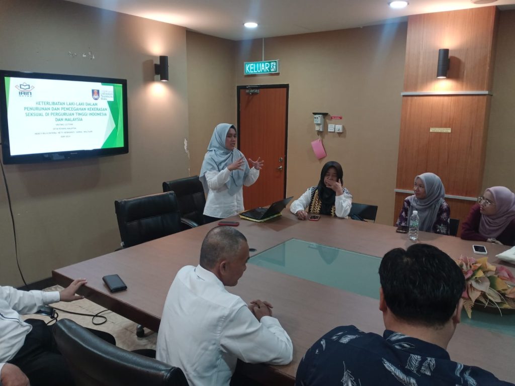 Realisasi dari tiga kegiatan di atas, deligasi IAIN Metro melakukan aktivitas selama di University Mara (UiTM). Adapun tim Reseach Collaboration dipimpin langsung oleh Rektor IAIN Metro, dimana tim menawarkan riset terkait Pencegahan dan Penanggulangan Tindak Kekerasan seksual di Perguruan Tinggi Indonesia-Malaysia yang dipaparkan oleh Nency Dela Oktora, M.Sy dari Program Studi Hukum Keluarga Islam IAIN Metro. Sainul, S.H., M.H menawarkan riset kolaborasi berbasiskan kearifan lokal atau local wisdom dalam Budaya Melayu Serumpun. Sedangkan Rektor sendiri menawarkan kajian riset pada aspek Moderasi Beragama pada masyarakat Indonesia dan Malaysia.