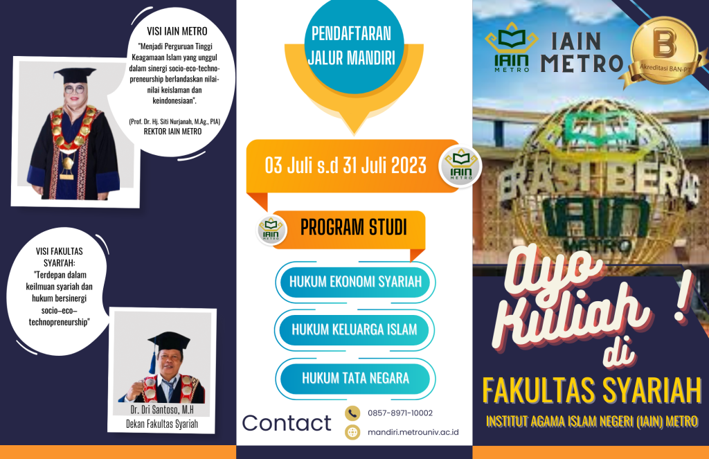 Pendaftaran Penerimaan Mahasiswa Baru Jalur Mandiri Fakultas Syariah IAIN Metro Tahun Akademik 2023/2024 akan segera dibuka, lho! Pastikan kamu mencatat tanggal-tanggal pentingnya ya, jangan sampai ketinggalan.