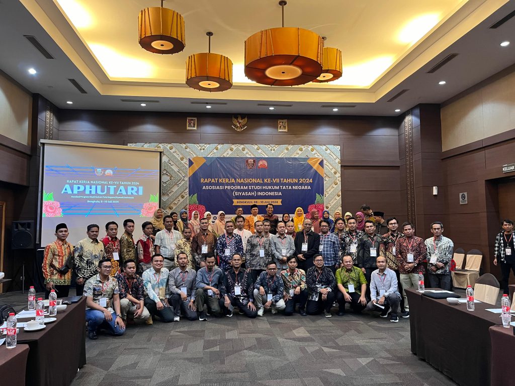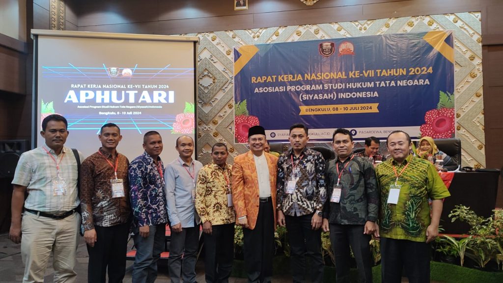 Asosiasi Program Studi Hukum Tata Negara (Siyasah Syar’iyyah) Indonesia (APHUTARI) baru saja menyelesaikan Rapat Kerja Nasional (Rakernas) Ke-VII di Bengkulu, yang berlangsung dari tanggal 8 hingga 10 Juli 2024. Acara tersebut berlangsung di Aula Fakultas Syariah UIN Fatmawati Sukarno (FAS) Bengkulu dan dihadiri oleh perwakilan dari 58 Perguruan Tinggi Keagamaan Islam Negeri (PTKIN) dari seluruh Indonesia. Di antaranya terdapat 29 Universitas Islam Negeri (UIN), 24 Institut Agama Islam Negeri (IAIN), dan 5 Sekolah Tinggi Agama Islam Negeri (STAIN). Adapun dari Fakultas syari’ah IAIN Metro mendelegasikan Ketua Prodi Hendra Irawan, M.H. dan Sekretaris Prodi Choirul Salim, M.H., untuk mengikuti kegiatan tersebut. Agenda utama Rakernas itu adalah Workshop dan Rapat Review Kurikulum Program Studi (Prodi) Hukum Tata Negara (HTN).